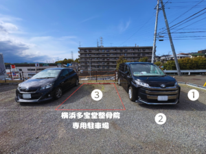 ●木・金曜日は横浜多宝堂治療院&整骨院前の3番駐車場がご利用いただけます。